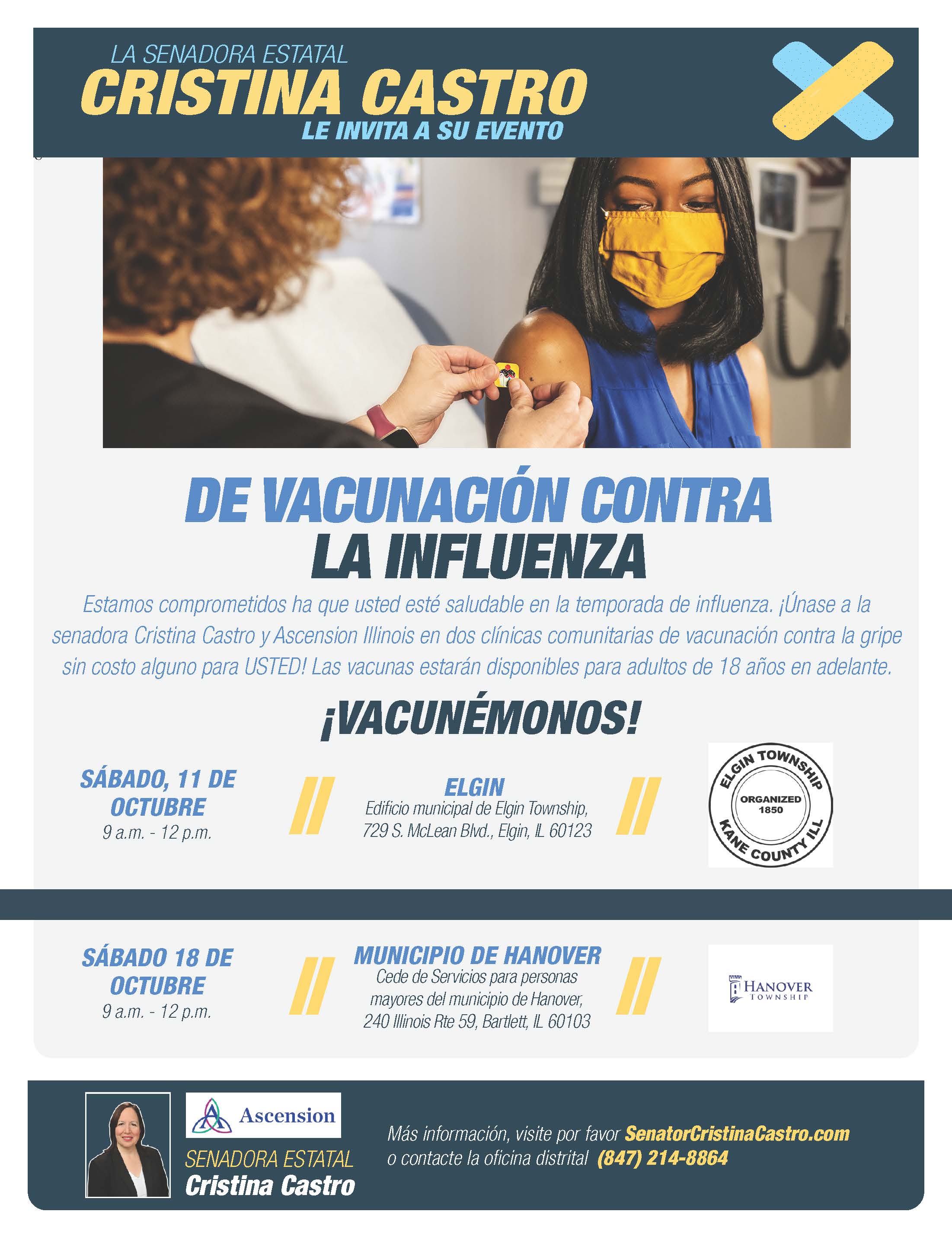 As flu season approaches, State Senator Cristina Castro is encouraging residents to protect themselves by getting their annual flu shot at two upcoming events in Elgin and Bartlett.
