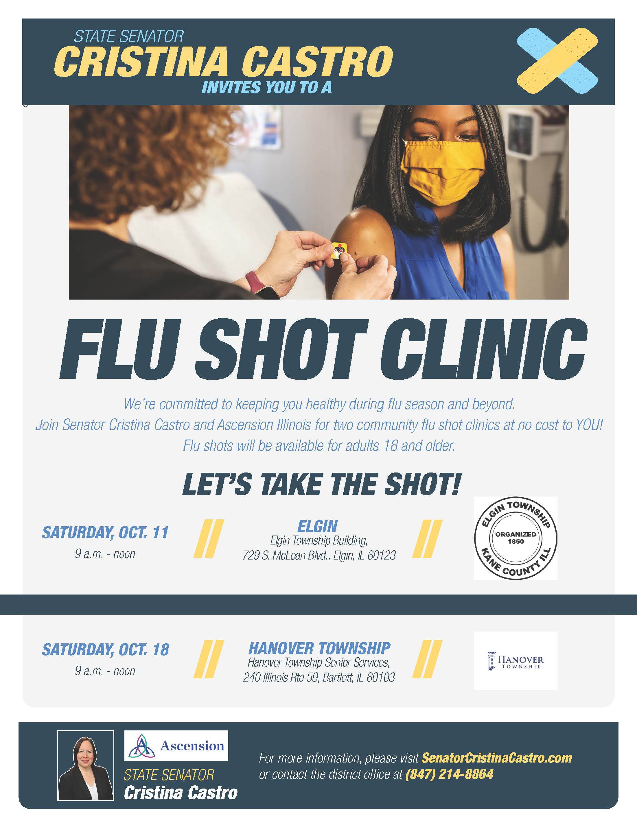 As flu season approaches, State Senator Cristina Castro is encouraging residents to protect themselves by getting their annual flu shot at two upcoming events in Elgin and Bartlett.